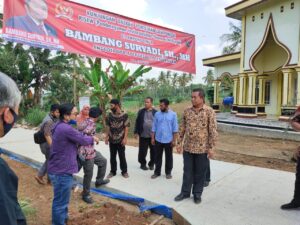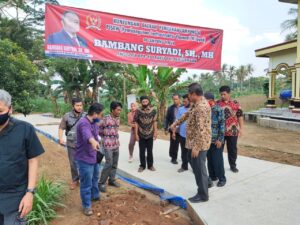 LAMPUNG TIMUR (PeNa) – Anggota Komisi V Dewan DPR-RI asal Lampung II, Bambang Suryadi meninjau langsung bantuan program insfrastruktur melalui Program Inspirasi Ekonomi Wilayah (PISEW), di Kecamatan Batang Hari, Lampung Timur, Sabtu (25/7).