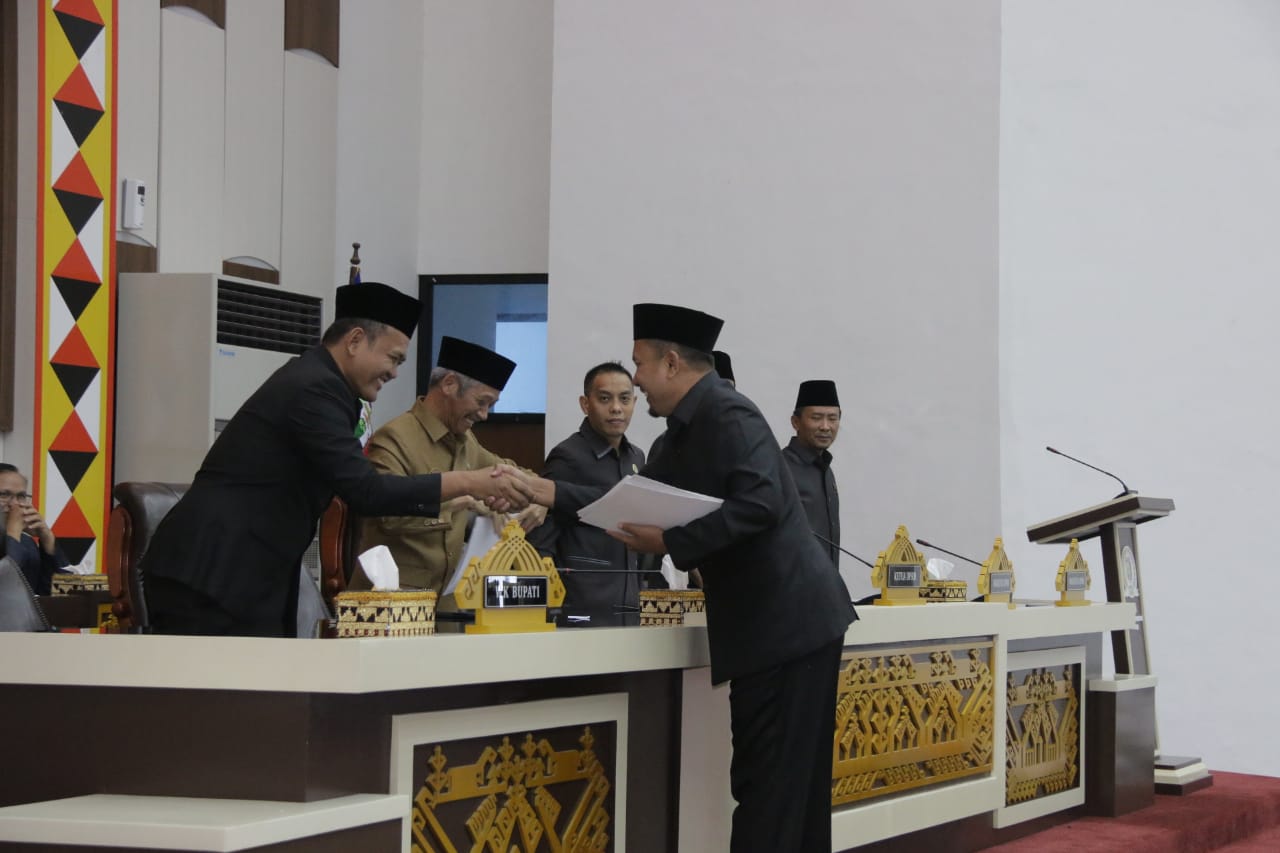 PRINGSEWU-(PeNa), Rapat paripurna DPRD Pringsewu dengan agenda penyampaian keputusan DPRD Pringsewu tentang rekomendasi hasil pembahasan LKPJ kepala daerah tahun anggaran 2018 digelar di gedung DPRD Pringsewu di komplek perkantoran pemkab setempat, Selasa (21/05).