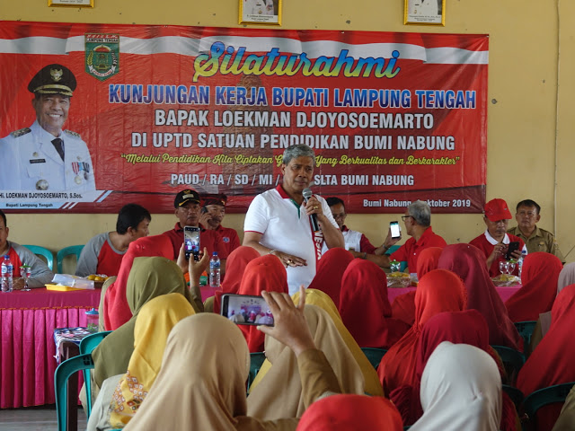 Acara yang tergabung dalam rangkaian kunjungan kerja Bupati Lampung Tengah Loekman Djoyosoemarto di kecamatan Bumi Nabung ini dihadiri oleh Kepala sekolah,guru TK,PAUD,SD ,SMP dan SLTA sekecamatan Bumi Nabung.