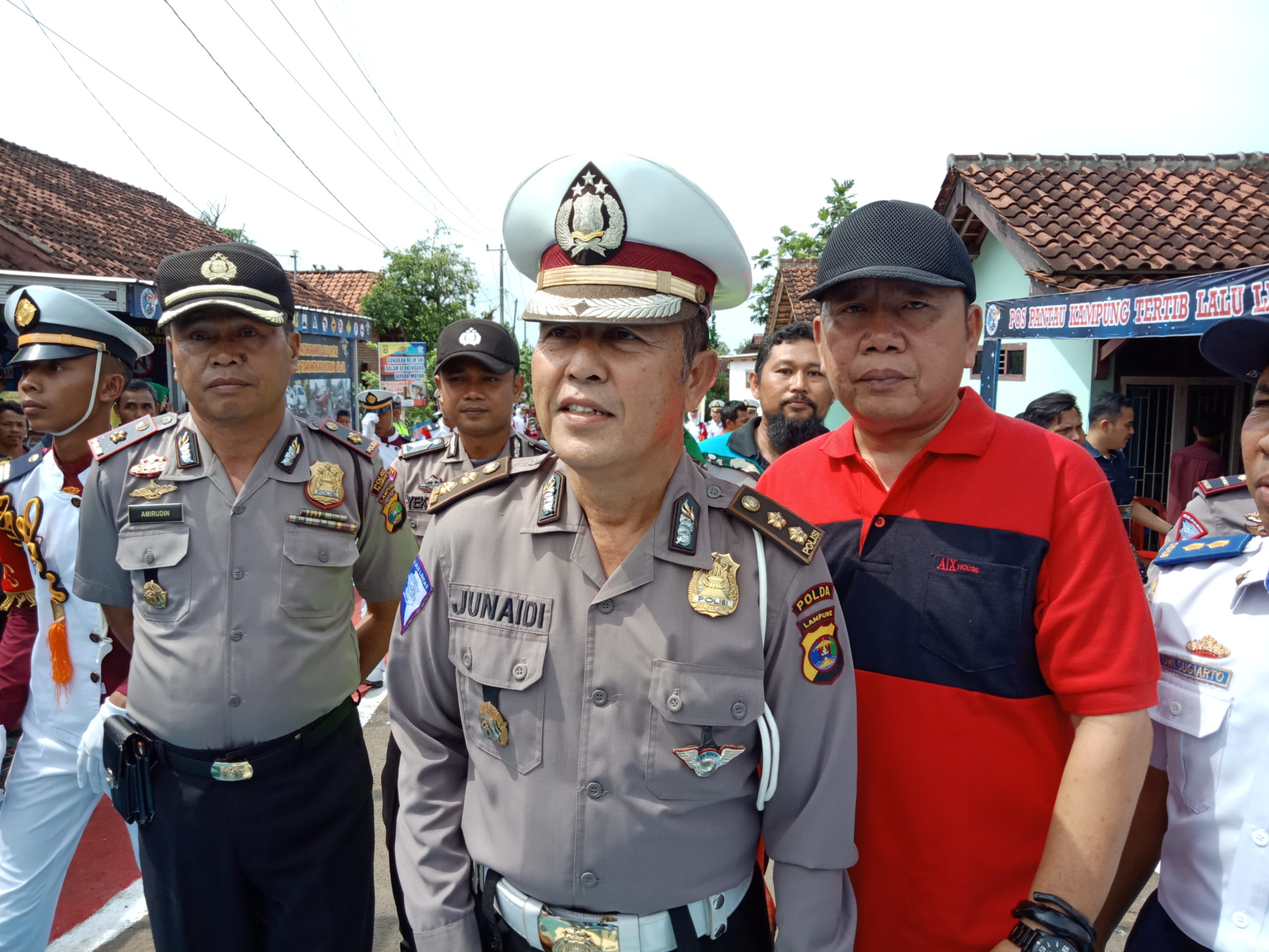 Kunjungannya sebagai Tim penilai pada lomba Kampung Lalulintas tersebut disambut Kasat Lantas Polres Pesawaran AKP I Wayan Budiarta beserta jajaran dengan parade siswa dan siswi yang mengenakan seragam Drum Band Patroli Keamanan Sekolah (PKS).