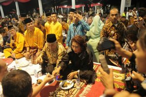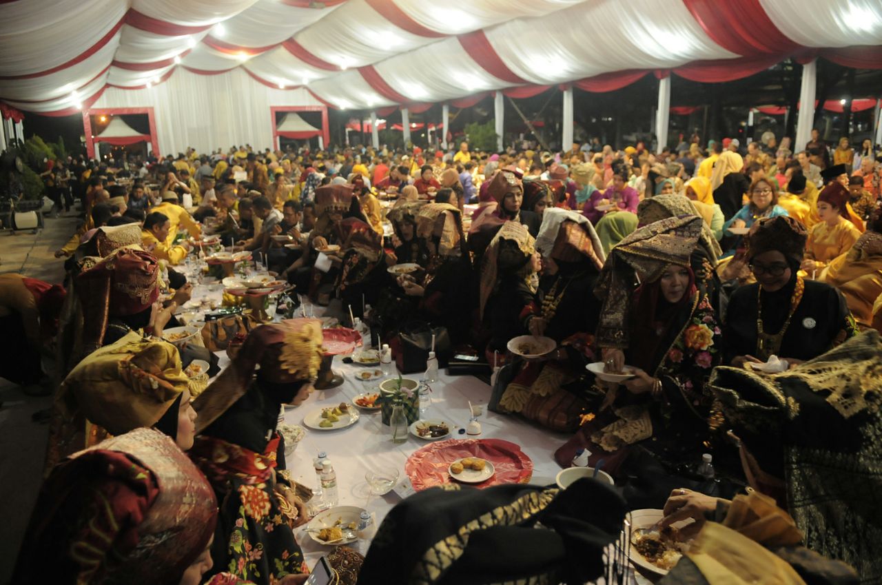 PADANG-(PeNa), Wartawan dan peserta Peringatan Hari Pers Nasional (HPN) 2018 di Padang Sumatera Barat dijamu Makan Bajambo (bersama) di halaman Museum Adtyawarman Padang Sumatera Barat, Kamis (8/2) malam.