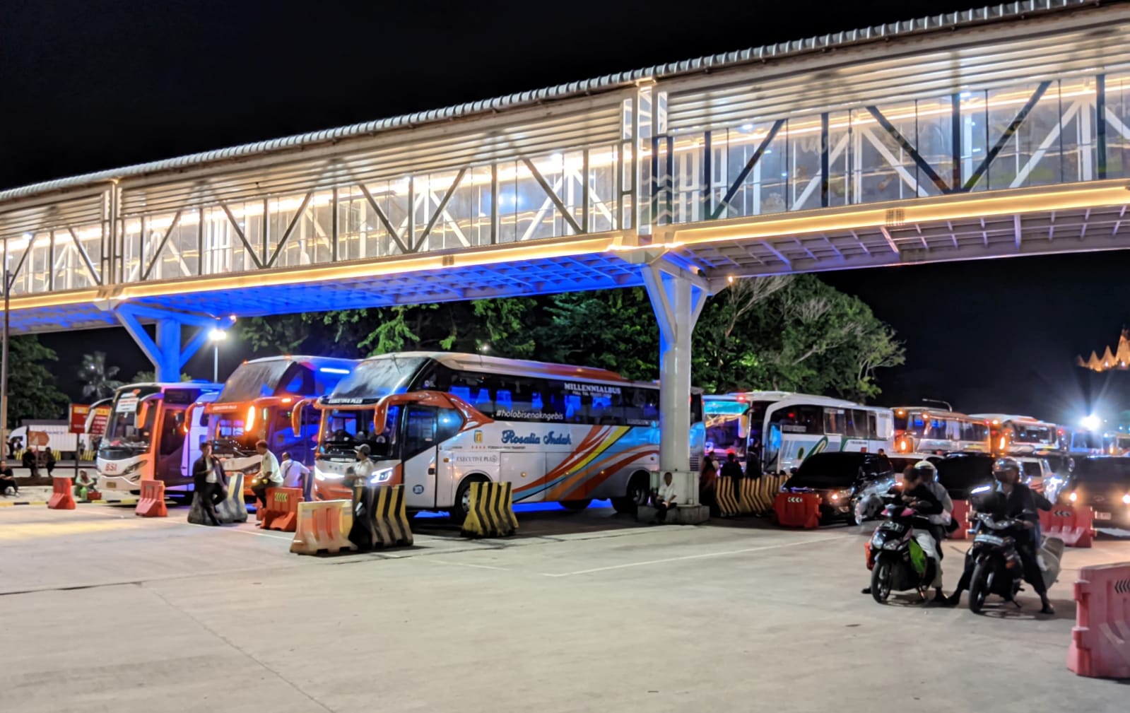 Pantauan di rest area KM20B Tol Bakauheni-Terbanggi Besar (Bakter) sekitar pukul 16.10 WIB menunjukkan arus lalu lintas kendaraan pribadi dan bus menuju Pelabuhan Bakauheni terlihat ramai namun tetap lancar. Petugas dari Polres Lampung Selatan tampak menempelkan stiker penanda pada kendaraan yang telah memiliki tiket agar dapat langsung masuk ke pelabuhan.