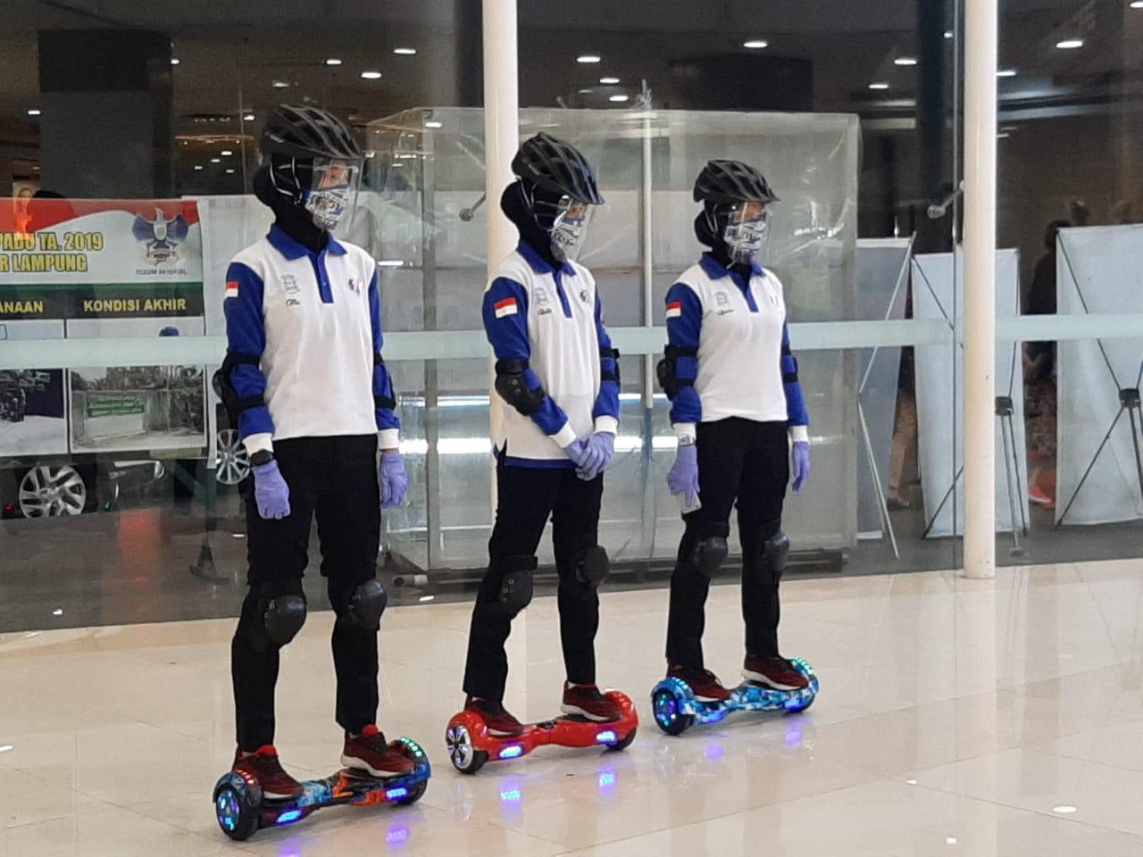 Momentum tersebut juga dilakukan lounching Patroli Polwan Hoverboard dengan membagikan facesheild dan masker yang diresmikan langsung oleh Kapolresta Bandarlampung Kombes Pol Yan Budi Jaya.