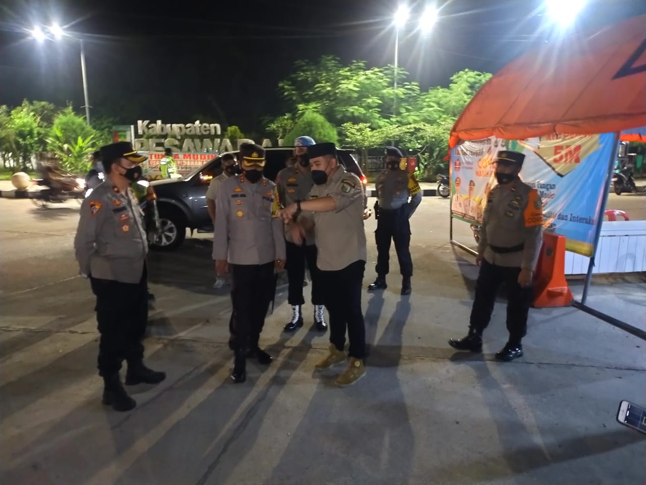 P E S A W A R A N – (PeNa), Bupati Pesawaran Dendi Ramadhona dan Kapolres AKBP Vero Aria Radmantyo memantau langsung Pos Penyekatan Covid-19 disejumlah titik diwilayahnya, Rabu (12/05/2021) malam.