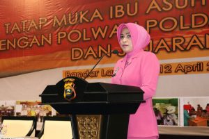 BANDARLAMPUNG-(PeNa), Mantan pacar Kapolda Lampung yang sekarang menjadi Ibu Asuh Polwan Lampung, Elly Suntana menyebut bahwa polwan merupakan profesi unik. Demikian disampaikan saat tatap muka dengan Polwan Polda Lampung dan jajaran di Mahligai Agung Convention Hall UBL, Kamis (12/4).
