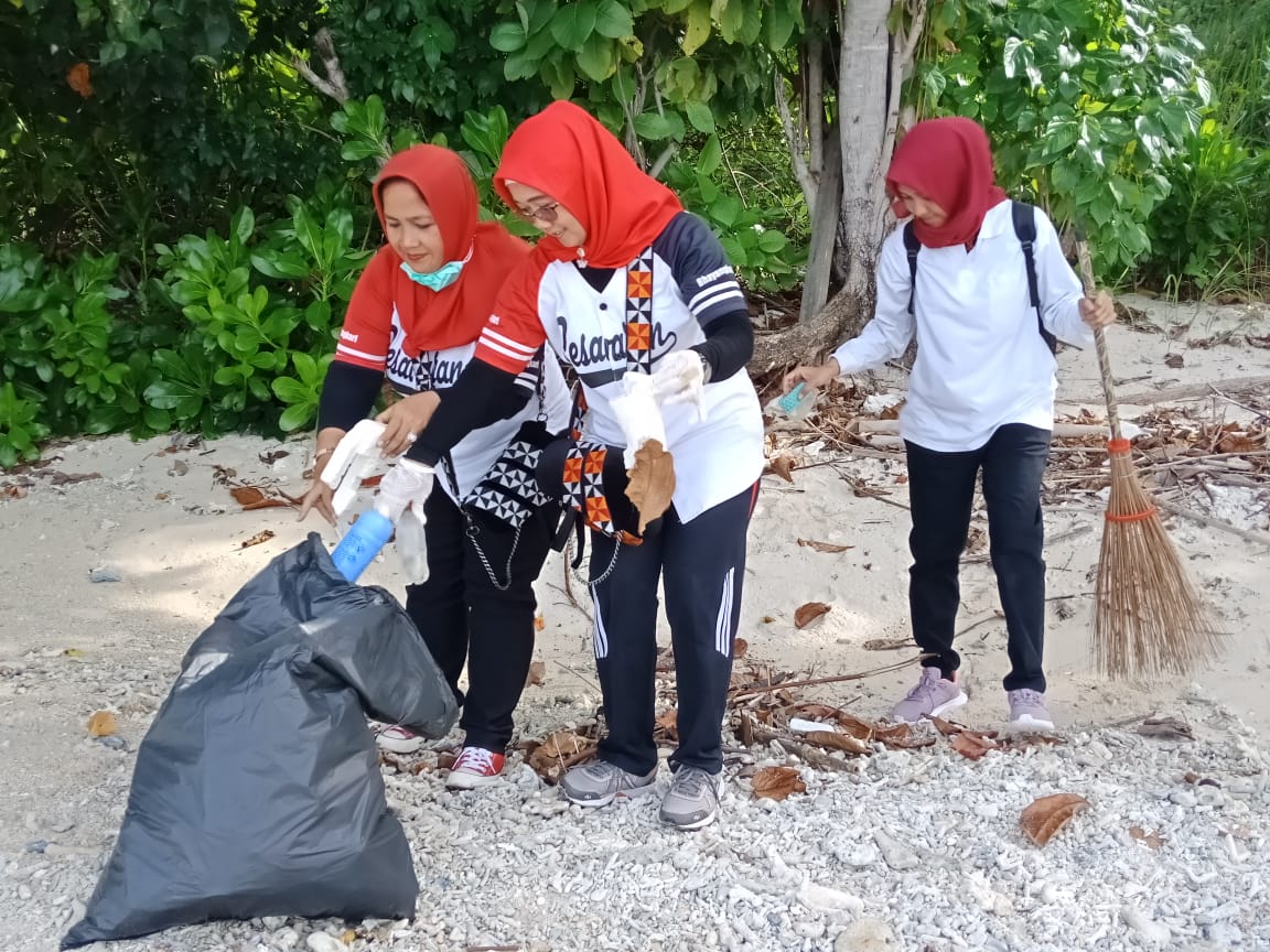 PESAWARAN-(PeNa), Mantan Pacar yang menjadi istri Kapolres Pesawaran Putri Popon Sunggoro pimpin Bhayangkari membersihkan Pantai Kucing Riang Desa Pagar Jaya Kecamatan Punduh Pidada, Kamis (11/04).