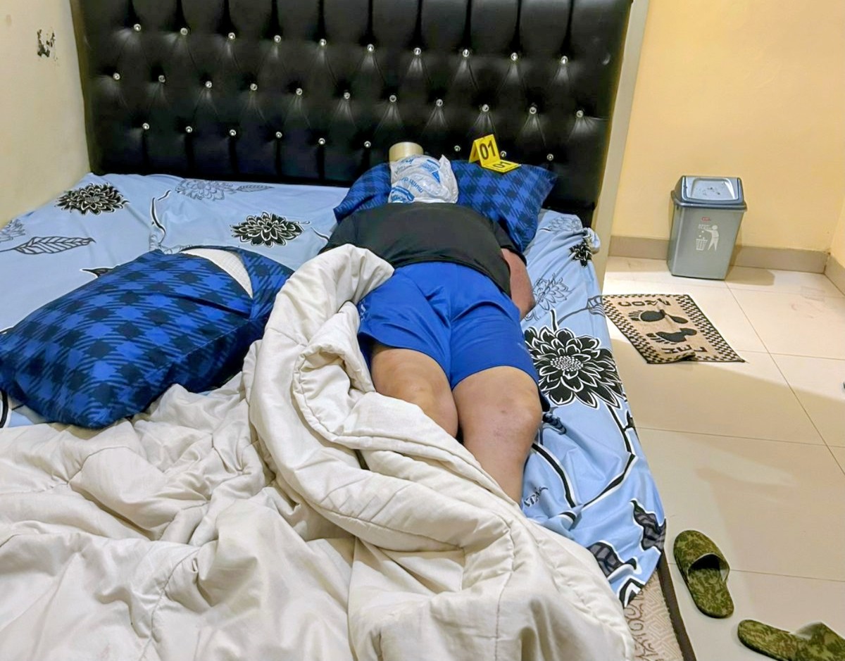 Pintu kamar kos diketahui terkunci dari dalam. Saat dibuka, korban ditemukan tergeletak di atas kasur dengan kondisi kepala terbungkus plastik dan dilaporkan terlilit lakban kuning.