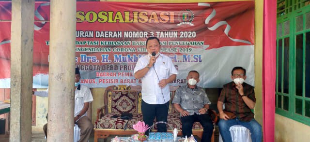 BANDARLAMPUNG (PeNa) – Anggota DPRD Provinsi Lampung Fraksi Partai Gerindra Mukhlis Basri kembali turun ke dapil dalam rangka melakukan sosialisasi peraturan daerah (Sosperda) Provinsi Lampung nomor 3 tahun 2020 Tentang Adaptasi Kebiasaan Baru (AKB) Dalam Pencegahan dan Pengendalian Virus Corona Disease 2019 (Covid-19) di Pekon Kotaagung, Kecamatan Kotaagung, Tanggamus, Sabtu (13/3).