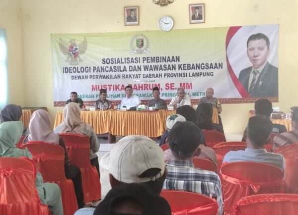 Pesawaran — Sosialisasi Pembinaan Ideologi Pancasila dan Wawasan Kebangsaan (PIP-WK), intens dilakukan oleh anggota DPRD Provinsi Lampung, asal Fraksi Golkar Mustika Bahrum. Dengan tujuan memberikan pendalaman pemahaman tentang Pancasila secara utuh kepada masyarakat, khususnya Warga Desa Paguyuban, Kecamatan Way lima Pesawaran. Sabtu (21/06/2025).