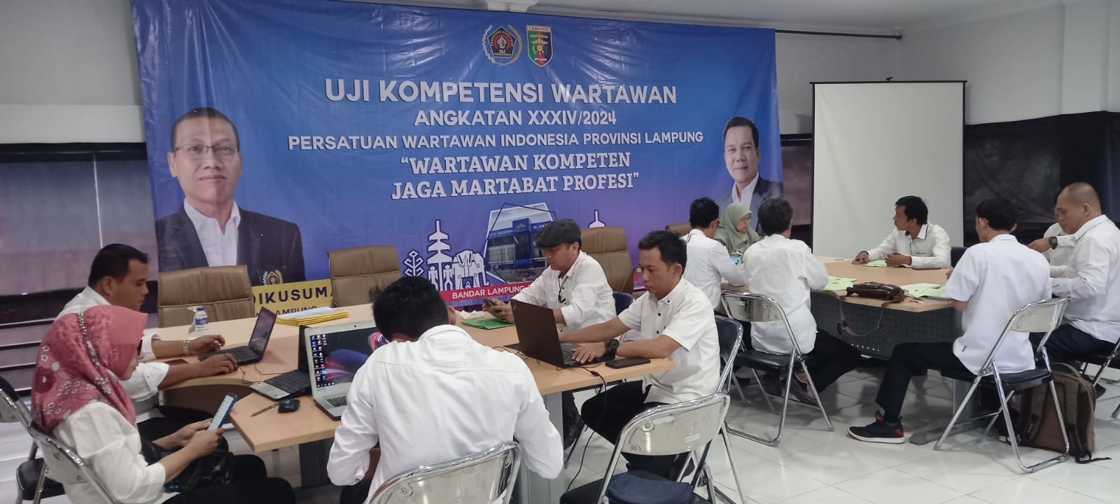 BANDAR LAMPUNG-(PeNa), Guna menaikan kualitas Sumber Daya Manusia (SDM), 36 anggota Persatuan Wartawan Indonesia (PWI) dari berbagai daerah dan kota mengikuti Uji Kompetensi Wartawan (UKW) jenjang madya di Aula Balai Wartawan Sofian Ahmad Sekretariat PWI Lampung, Senin (05/08/2024).