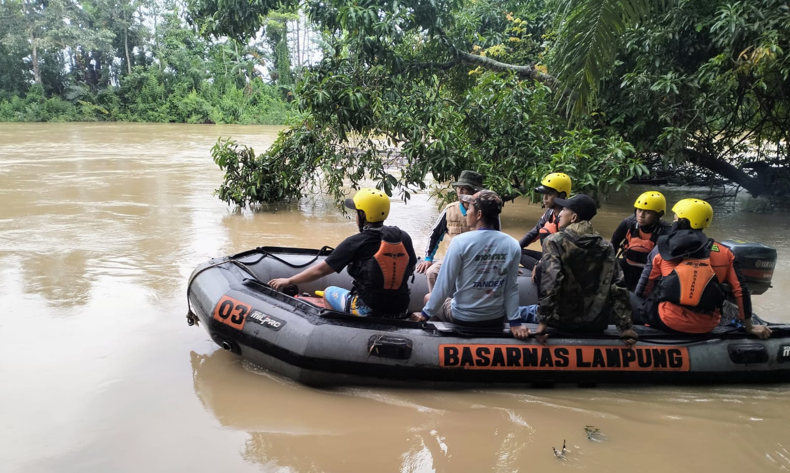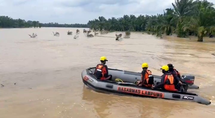 Sementara SRU kedua melakukan penyisiran menggunakan perahu karet milik BPBD Lampung Timur dengan jarak pencarian sekitar dua kilometer dari titik kejadian menuju hilir sungai.