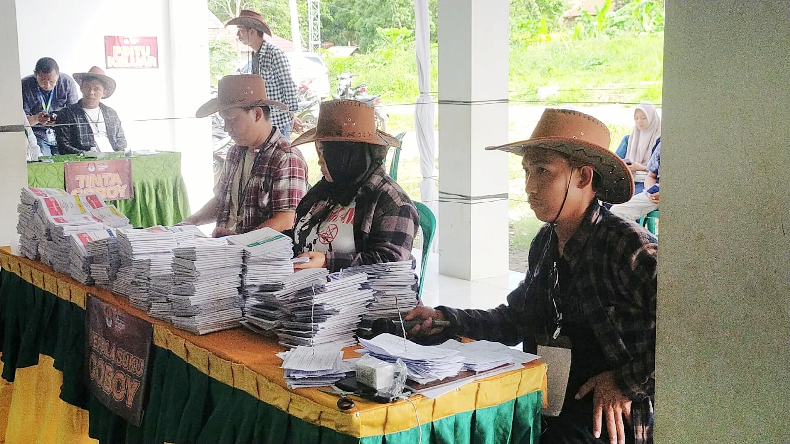 Dari celana jeans, kemeja kotak-kotak, hingga topi kulit ala koboy beneran, anggota KPPS memeriahkan Pemilu 2024 dengan tema yang tidak biasa.