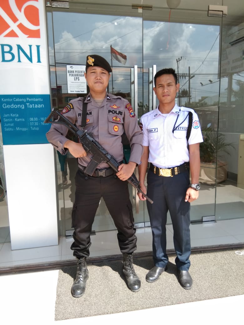 “Tadi pagi hingga siang, kita bantu pengamanan di Bank BNI 46 Cabang Pembantu Pesawaran dan Bank Lampung Cabang Pembantu Gedong Tataan. Sedikitnya ada dua personil yang bertugas diantaranya ada Bripda Ryan Saputra dan Bripda M Yusuf Z, ” jelas dia.