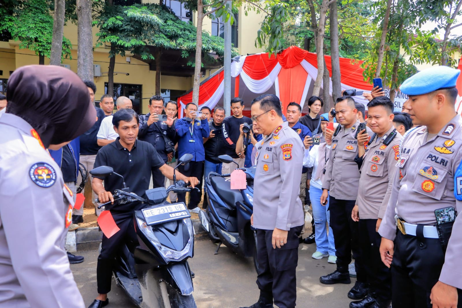Salah satu korban, Heri Juansah, menyampaikan haru, “Saya sangat berterima kasih kendaraan saya kembali. Sukses untuk Polri yang selalu melindungi masyarakat.”