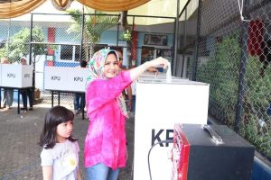 Dendi mengajak istri Nanda Indira Dendi bersama keluarga menuju ke TPS tersebut membaur dengan para pemilih yang sudah ramai mendatangi lokasi tempat bilik suara disiapkan.