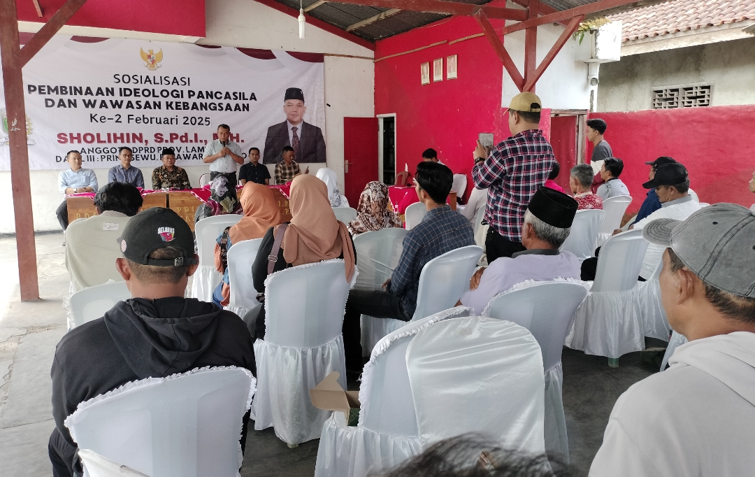 Pringsewu — ‘Sosialisasi Pancasila sangat perlu dan penting, untuk terus menjunjung tinggi nilai-nilai Luhur sesuai kultur dan budaya bangsa. Kemudian, menyampaikan hasil sosialisasi Pembinaan Ideologi Pancasila dan Wawasan Kebangsaan ke lingkungan keluarga, masyarakat dan lingkungan’, demikian disampaikan Ketua DPC PDI Perjuangan Kabupaten Pringsewu, Palgunadi. Dihadapan kader dan pengurus Partai. Sabtu (15/02/2025).