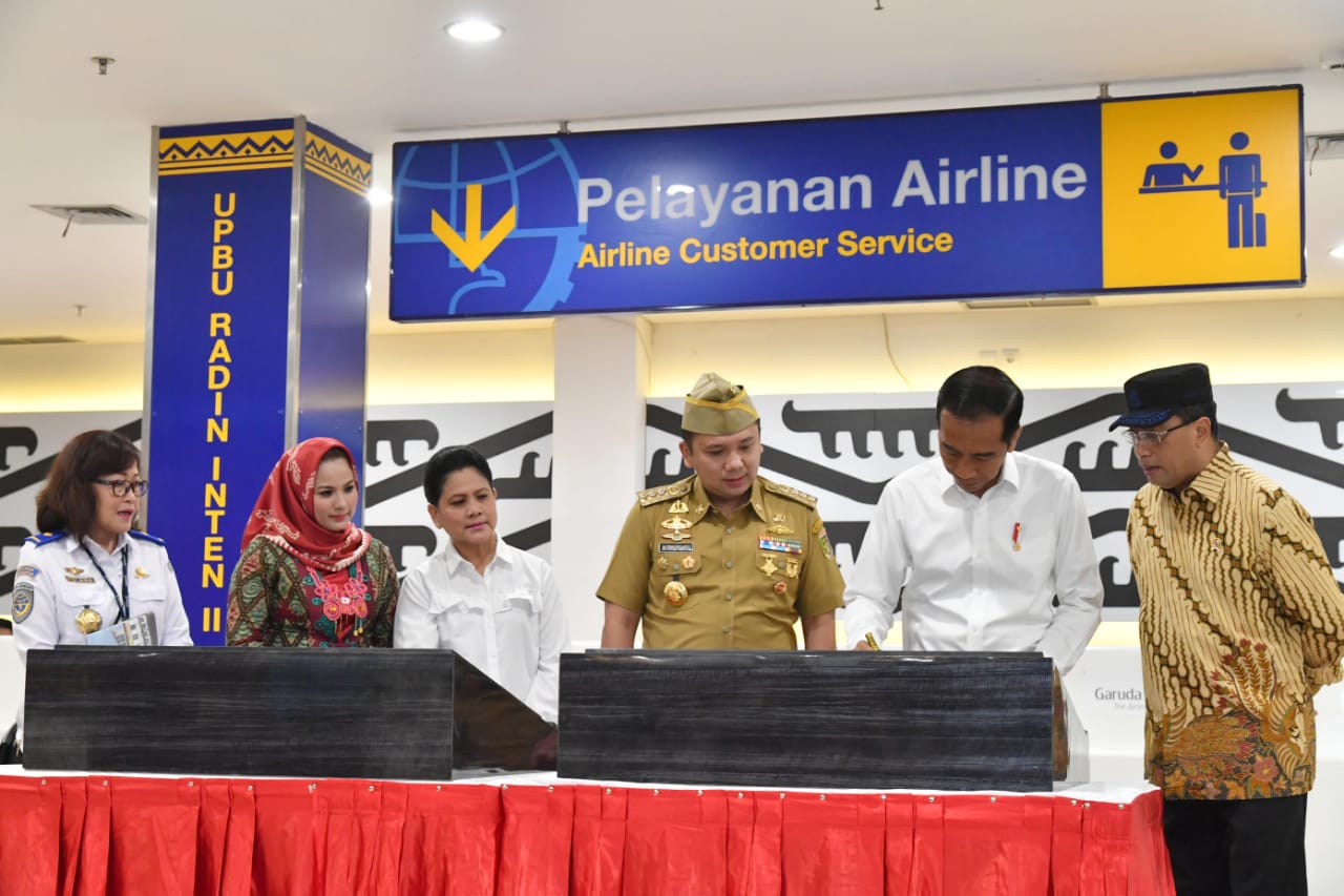 Dalam peninjauan ini, Kepala Negara sekaligus melakukan penandatanganan prasasti sebagai tanda peresmian terminal baru Bandar Udara Internasional Radin Inten II dan peresmian terminal baru Bandar Udara Silampari.