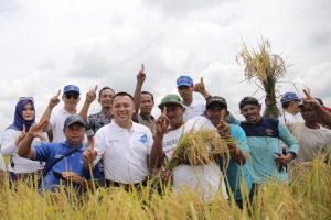 Pringsewu (PeNa)-Calon Gubernur Lampung nomor urut 1, H. M. Ridho Ficardo, Senin (26-3) pagi, bergabung dengan warga Desa Wonodadi, Gadingrejo, Pringsewu, memanen padi hasil tanaman warga setempat.