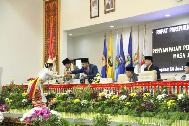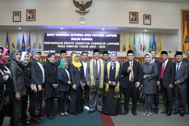 LAMPUNG (PeNa) DPRD Provinsi Lampung menggelar rapat Paripurna Istimewa Penyampaian Pidato Sambutan Gubernur Lampung Masa Jabatan Tahun 2019-2024 di Ruang Sidang Utama DPRD Provinsi Lampung, Jum’at 14 Juni 2019.
