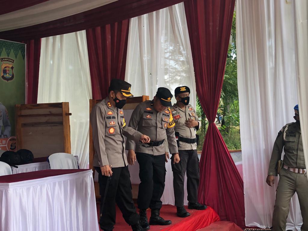 P E S A W A R A N – (PeNa), Untuk memastikan Pos Pengamanan (Pam) Lebaran Idul Fitri 1442Hijriyah disejumlah titik, Kapolres Pesawaran AKBP Vero Aria Radmantyo mengecek kondisi di lapangan, Ahad(09/05/2021).