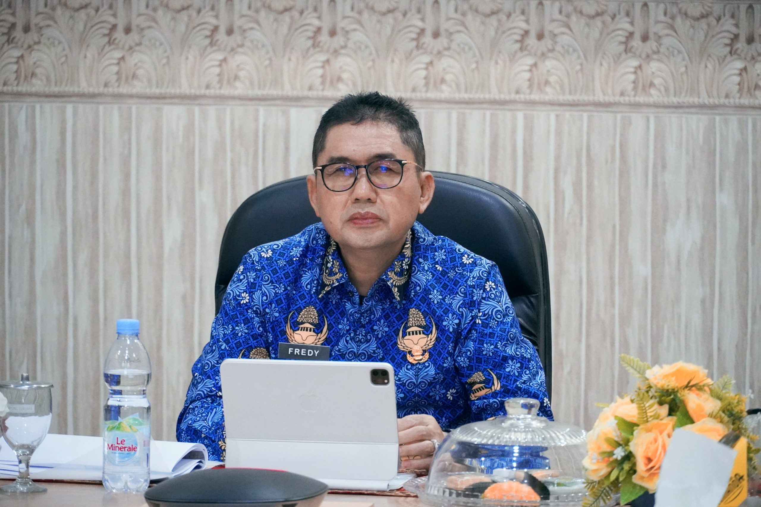 BANDARLAMPUNG – Inspektur Provinsi Lampung, Fredy, mengikuti Rapat Koordinasi Pengendalian Inflasi Daerah secara daring, di Ruang Command Center Lt. II Dinas Kominfotik Provinsi Lampung, Selasa (28/10/2024).