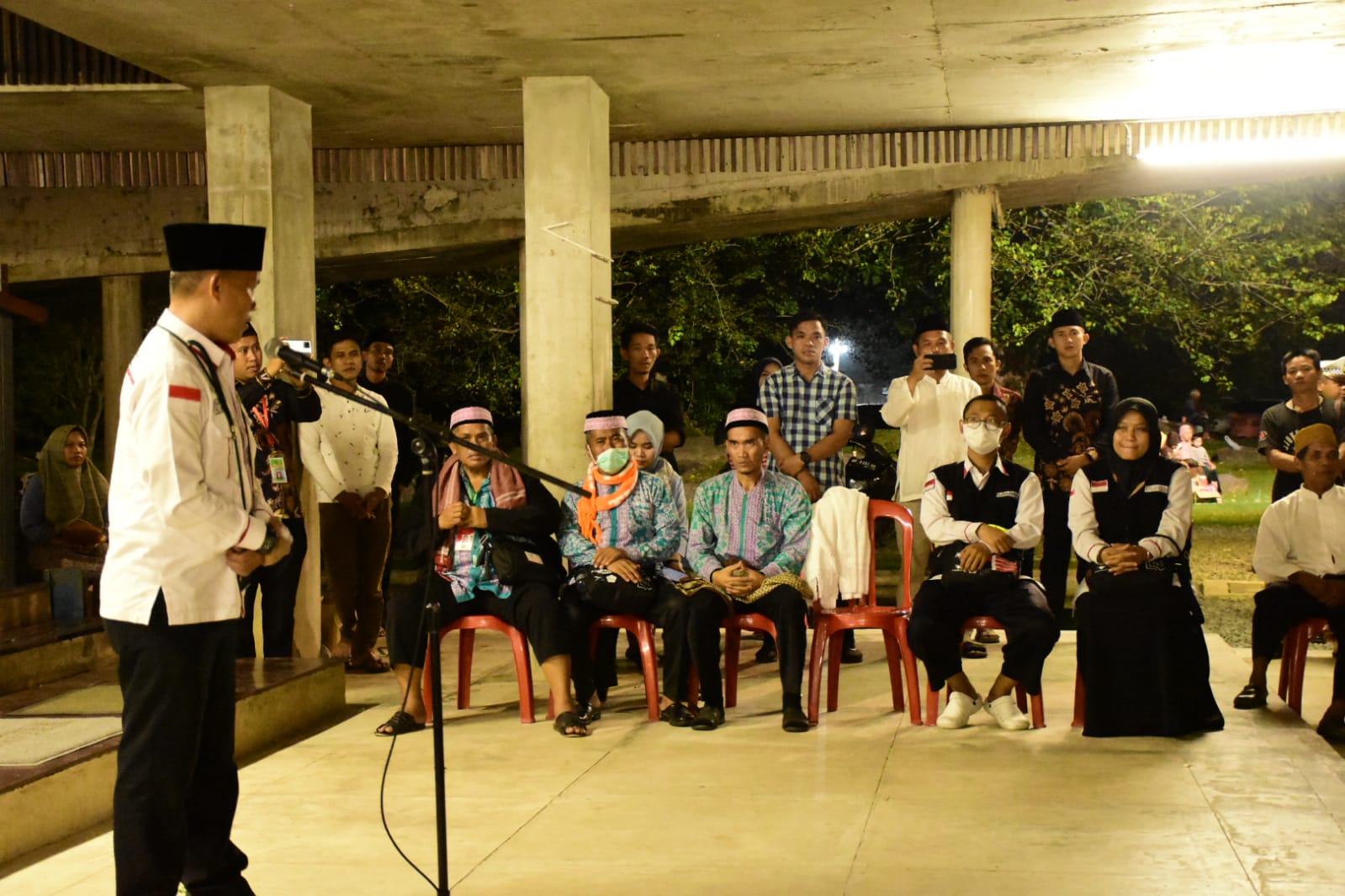 Sebanyak 131 jamaah haji dan satu petugas haji asal Kabupaten Tubaba tiba di Kompleks Islamic Center, Kelurahan Panaragan. Rabu (19/07/2023) malam.