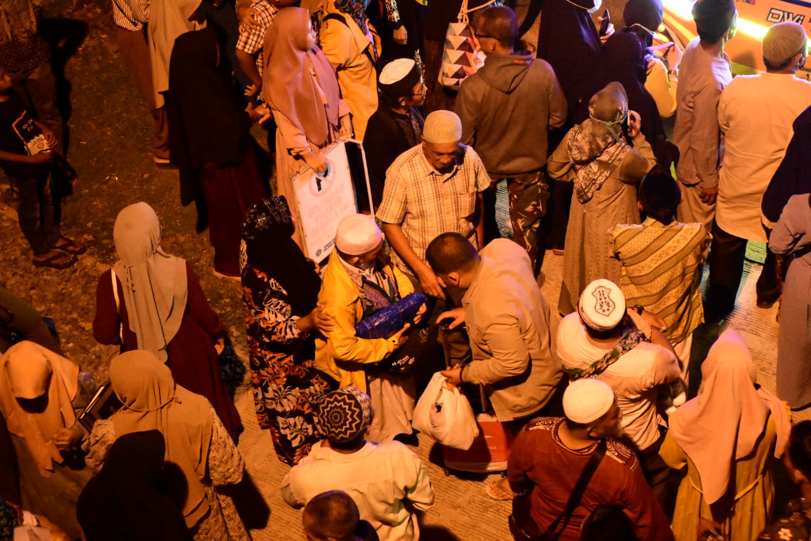 Sebanyak 131 jamaah haji dan satu petugas haji asal Kabupaten Tubaba tiba di Kompleks Islamic Center, Kelurahan Panaragan. Rabu (19/07/2023) malam.
