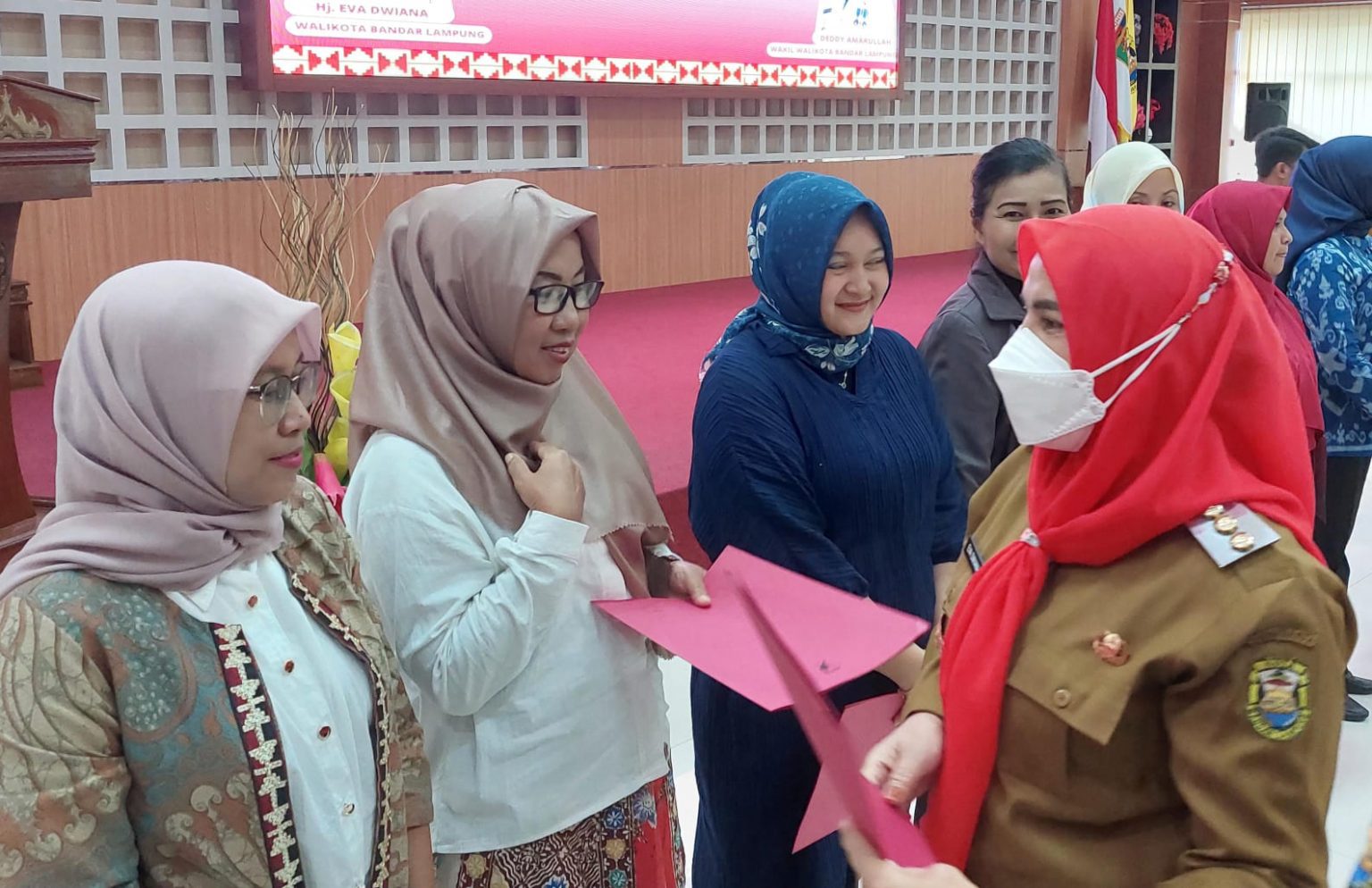 BANDAR LAMPUNG – Wali Kota Bandar Lampung Eva Dwiana menghadiri acara perayaan hari koperasi nasional ke-76 dan hari Usaha Mikro Kecil Menengah (UMKM) ke-7, di aula gedung semergou, sekretariat pemerintah kota (pemkot) Bandarlampung, selasa (15/8/2023).