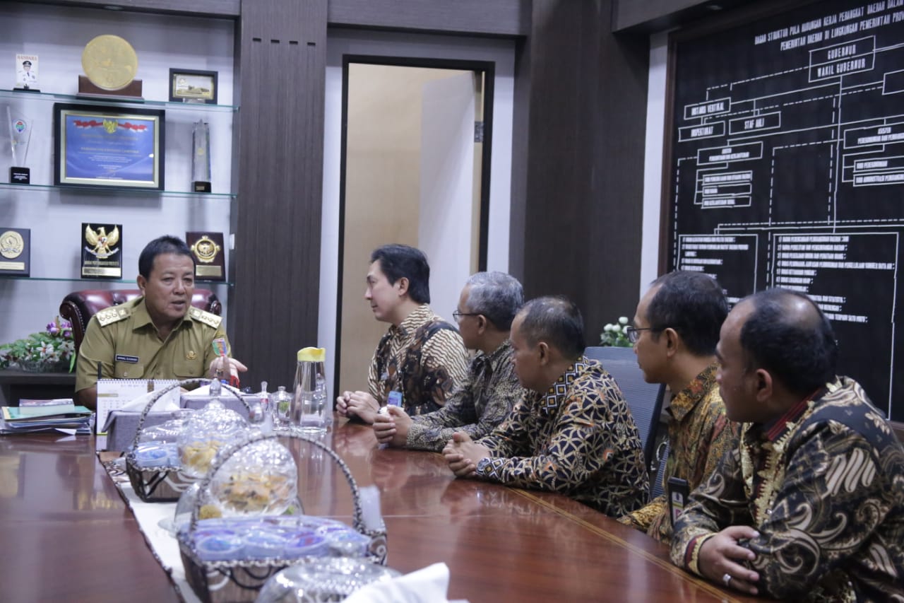BANDARLAMPUNG-(PeNa),Gubernur Lampung Arinal Djunaidi terima audiensi dari panitia World Surf League (WSL) dalam rangka persiapan event “Indonesia The Surf Capital Of The World” Krui Pro 2020 di Ruang Kerja Gubernur, Selasa (25/02/2020).