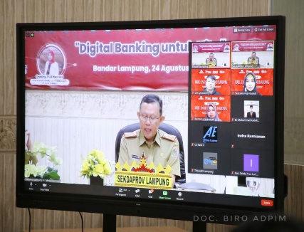 BANDARLAMPUNG (PeNa) – Pemerintah Provinsi (pemprov) Lampung melalui Sekda Provinsi Lampung Fahrizal Darminto, memperkenalkan Digital Banking kepada masyarakat Lampung pada Hari Indonesia Menabung (HIM) tahun 2020 yang digelar secara Virtual Zoom di Ruang Command Center, Dinas Kominfo, Senin (24/8/2020).
