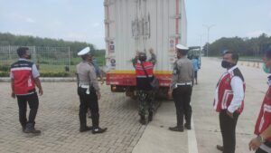 BANDARLAMPUNG – (PeNa) Upaya sosialisasi penggunaan masker terus dilakukan jajaran direktorat lalulintas polda lampung, kali ini satuan patroli jalan raya menempelkan sejumlah stiker kepada pengendara di jalur tol trans sumatera lampung dan di sejumlah terminal yang di peruntukan bagi kendaraan truck dan angkutan umum seperti bus antar kota serta antar provisni hingga angkutan perkotaan dan pedesaan.