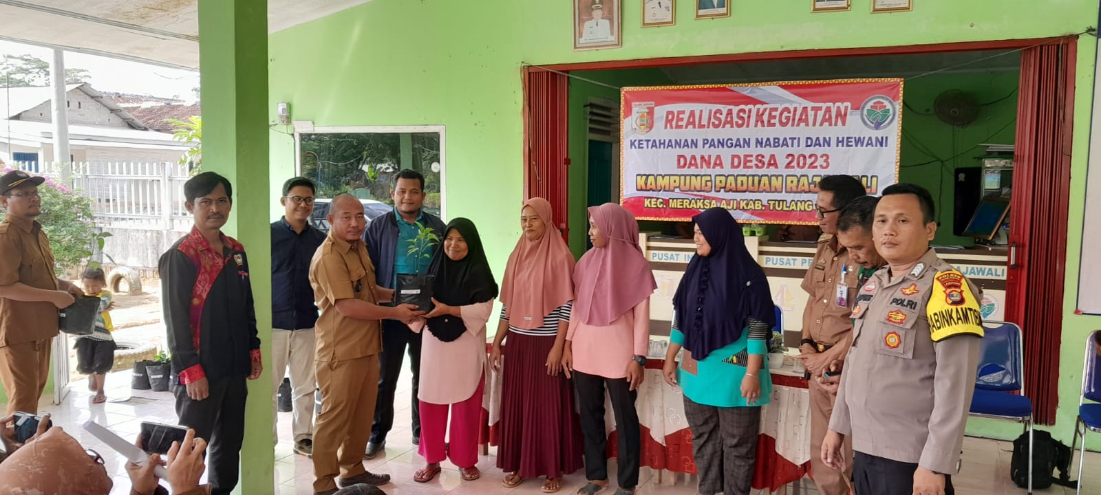Secara simbolis, penyerahan bibit cabai diberikan Heriyantoni selaku Kepala Kampung Paduan Rajawali didampingi Sekretaris Camat Meraksa Aji, Bhabinkamtibmas, Babinsa, Pendamping Desa/Pendamping Lokal Desa, dan Badan Permusyawaratan kampung (BPK).