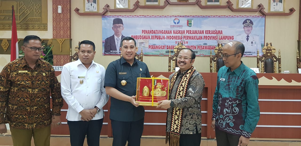 Bupati Pesawaran Dendi Ramadhona mengapresiasi langkah Ombudsman yang melegal formalkan kesamaan tujuan untuk meningkatkan kualitas pelayanan publik didaerah yang dipimpinnya.