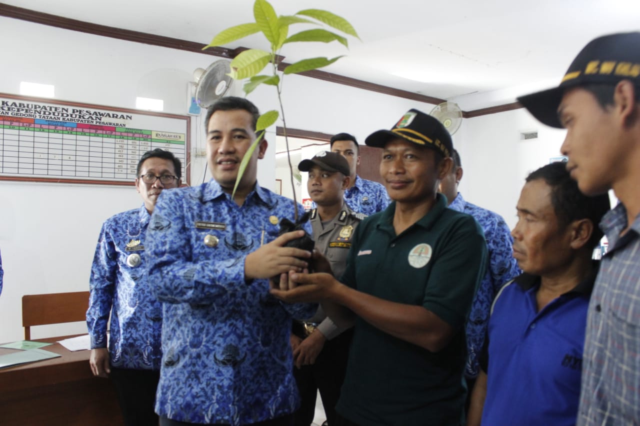 PESAWARAN-(PeNa), Untuk memberikan semangat masyarakat dalam meningkatkan produksi kakao, Bupati Dendi Romadhona berikan bibit unggul kepada tiga kelompok tani coklat, Kamis (17/01).