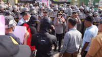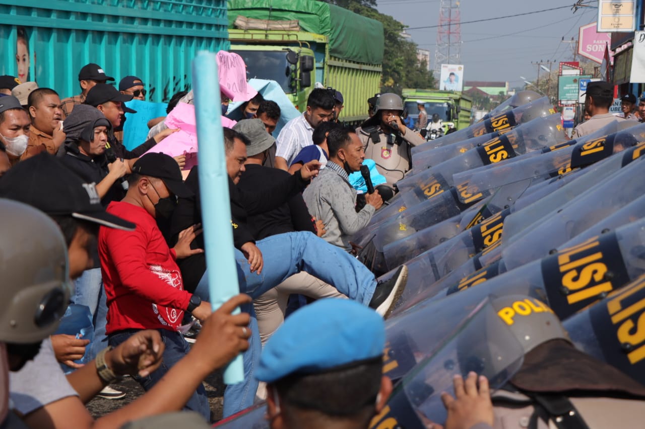 P E S A W A R A N -(PeNa), Dalam simulasi sistem pengamanan kota (Sispam Kota) sejumlah anggota polisi berpakaian preman mengamuk didepan Kantor Badan Pengawas Pemilu (Bawaslu) Kabupaten Pesawaran di Desa Sukaraja, Kecamatan Gedong Tataan Jum’at (23/08/2024).
