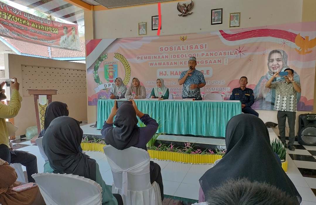 Pesawaran — ‘Pancasila merupakan pandangan hidup, dan dari sila-sila yang tertuang dalamnya harus menjadi pedoman kehidupan sehari-hari’, Demikian diungkapkan Kepala Desa Trimulyo Kecamatan Padang Cermin Pesawaran, Tasman. Di Aula Kantor Desa setempat. Sabtu (25/01/2025).