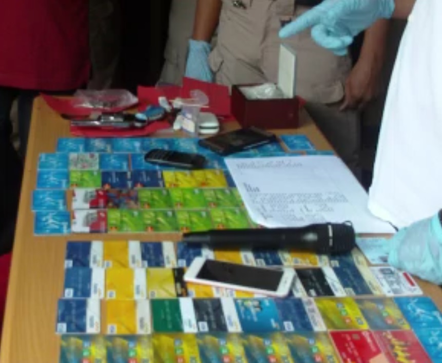 Modusnya, tersangka mengganjal lubang kartu ATM dengan menggunakan tusuk gigi menggunakan alat gergaji besi. Saat korbannya hendak mengambil uang dan tidak bisa memasukan kartu ATM, tersangka berpura-pura datang membantu memasukan kartu ATM dan menanyakan nomor PIN. Setelah mengetahui nomor PIN dan menukar kartu ATM korban, tersangka pergi kemudian melakukan penarikan uang korban di tempat lain. “Jumlah penarikan uang berpariasi, dari Rp 2 juta hingga Rp 3 juta lebih,” ungkapnya.