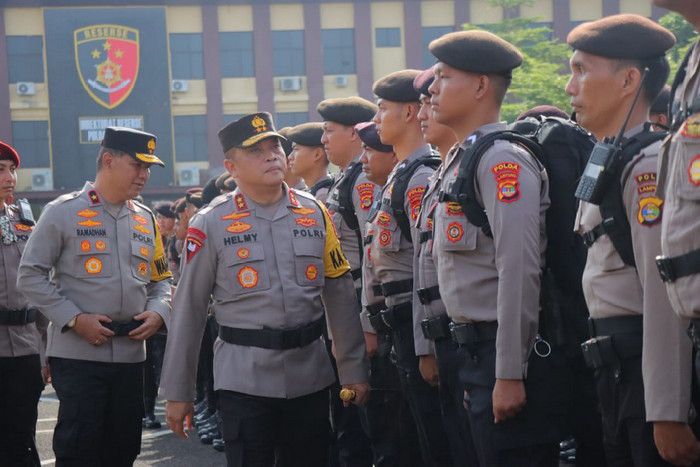 Dalam rangka mengamankan Pilkada 2024, Polda Lampung menyiagakan 7.600 personel di 15 kabupaten/kota, yang terdiri dari 1.986 personel Polda dan 5.614 personel Polres/Polresta.