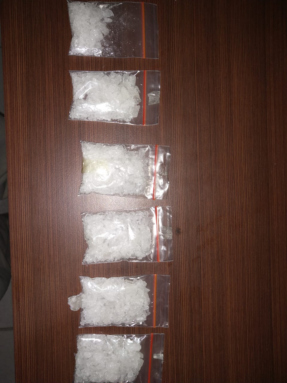 Ketika digeledah, ditubuh tersangka di temukan barang bukti sabu-sabu sebanyak satu paket. Setelah itu, petugas menggeledah rumahnya. Tepatnya, di dalam speaker aktif yang ada di ruang tamu, petugas menemukan sabu-sabu sebanyak 5 paket.