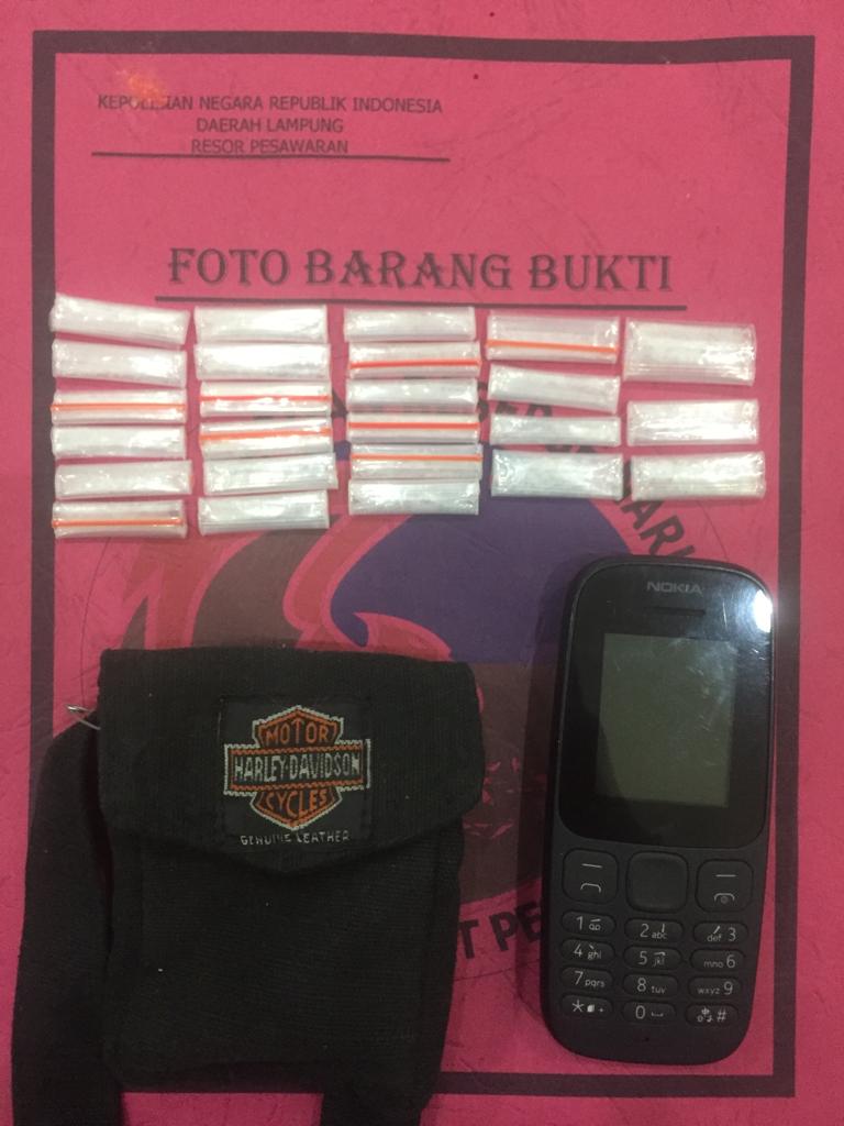 Kapolres Pesawaran AKBP Popon Ardianto Sunggoro mengatakan bahwa puluhan paket sabu siap edar ditemukan petugas di kamar rumah tersangka BR saat dilakukan penangkapan dan penggledahan setelah sebelumnya menerima laporan masyarakat tentang adanya dugaan jual beli narkoba.