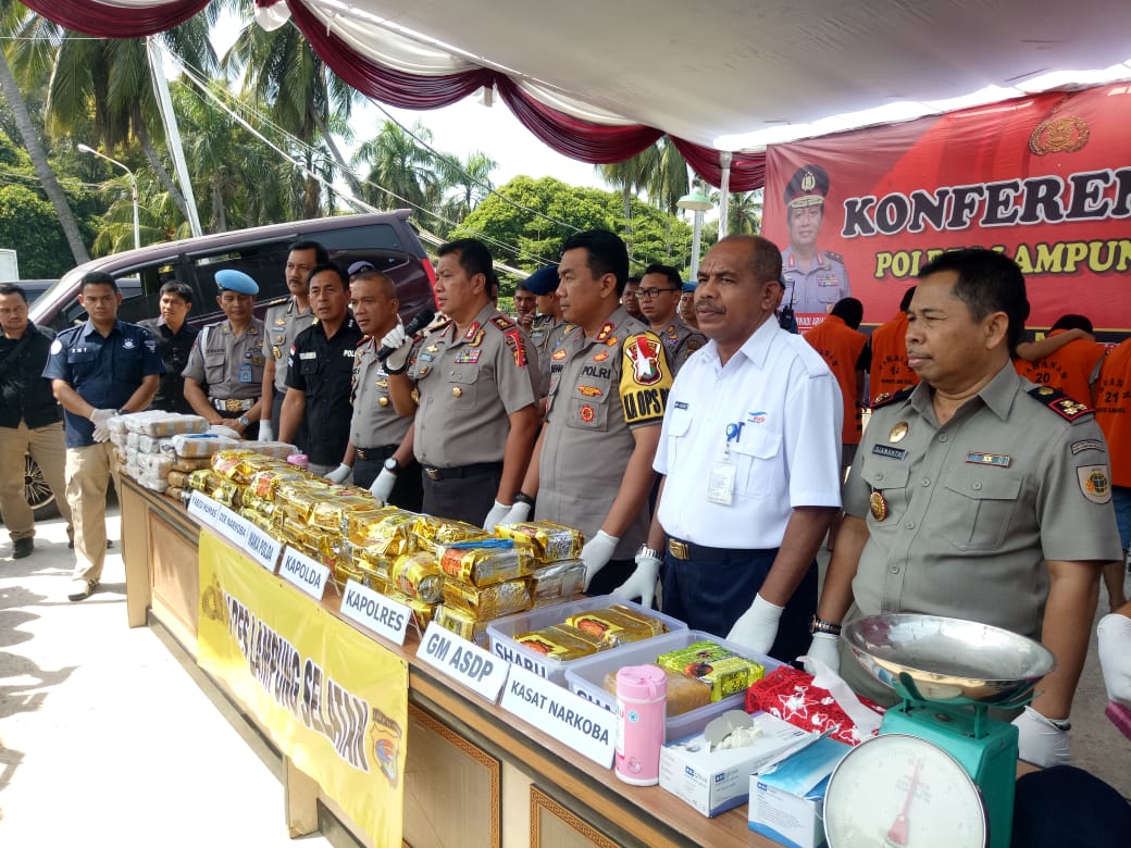 Kabid Humas Polda Lampung, Kombes Pol. Zahwani Pandra Arsyad membenarkan, Kapolda Lampung, Irjen Pol. Purwadi Arianto didampingi Waka Polda Lampung, Brigjen Pol. Rudi Setiawan, melaksanakan giat pers release hasil ungkap kasus peredaran gelap narkoba, sejak 25 Juni hingga 16 Juli 2019.