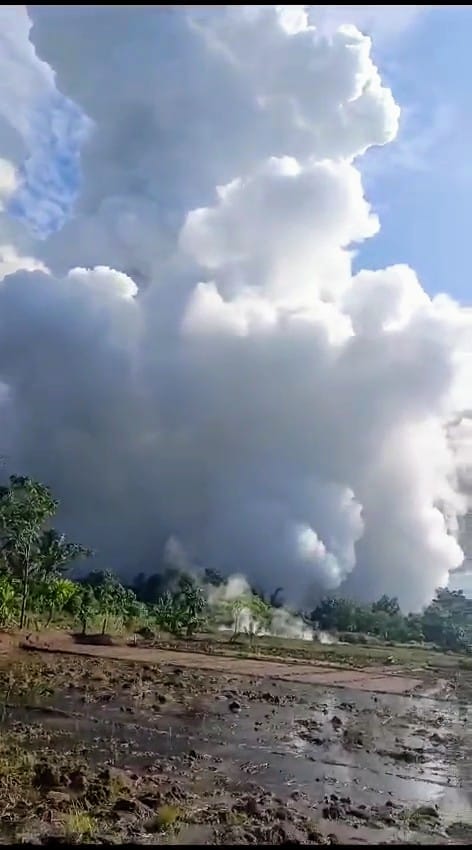 Dentuman ini diikuti oleh keluarnya material pasir, lahar, dan asap tebal yang membumbung tinggi, menimbulkan kekhawatiran bagi warga sekitar.