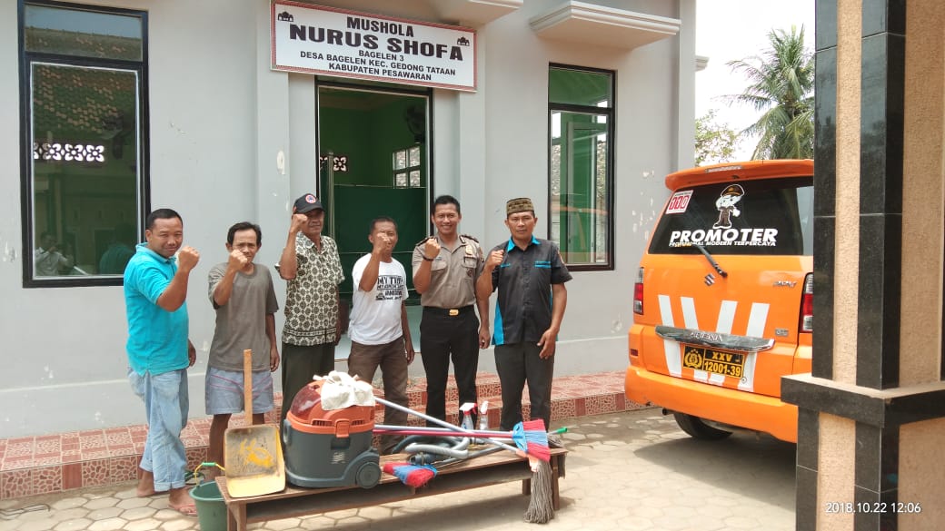 PESAWARAN-(PeNa), Sambil menjalin silaturahmi, puluhan warga dan petugas Polisi Peduli Rumah Ibadah Polres Pesawaran membersihkan rumah ibadah di Desa Begelen Kecamatan Gedong Tataan, Senin (22/10).