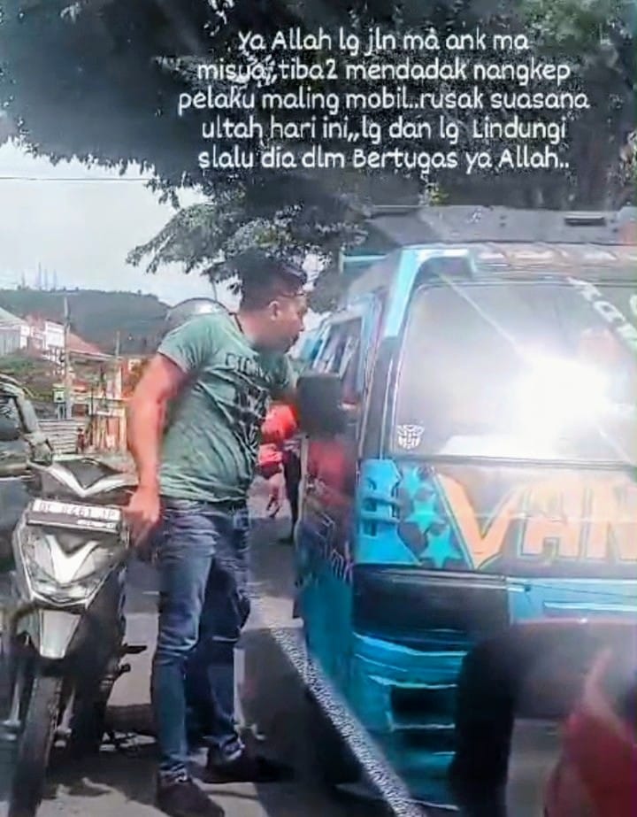 “Haduh, gemeter. Gimana kalau mobil kita dicirenin,” terdengar suara sang istri dalam rekaman video, mencerminkan kepanikan keluarga di tengah kejadian tersebut.