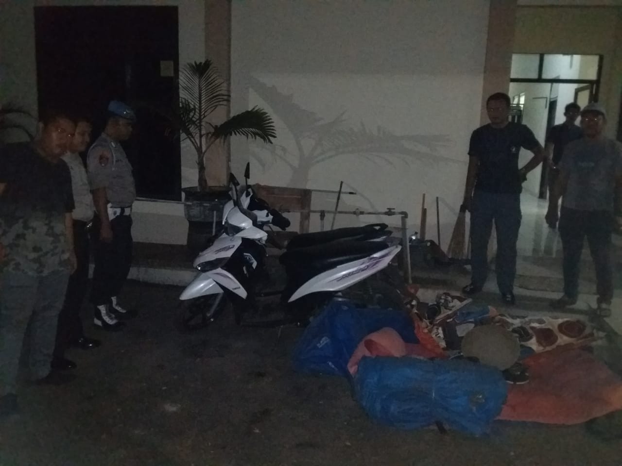 “Peralatan yang dijadikan barang bukti yang dimaksud adalah 1 (satu) unit sepeda motor honda beat tanpa nopol warna putih, 1 (satu) unit sepeda motor yamaha Mio nopol BE 3643 RG warna putih, 1 (satu) karpet dadu, 7 (tujuh) dadu koprok, 1 (satu) buah aki kecil, 1 (satu) buah tas selempang warna coklat yang berisikan sarung dadu koprok, 2 (dua) terpal warna biru, 2 (dua) pasang sandal warna biru dan coklat dan 1(satu) pasang sepatu, ” kata dia.