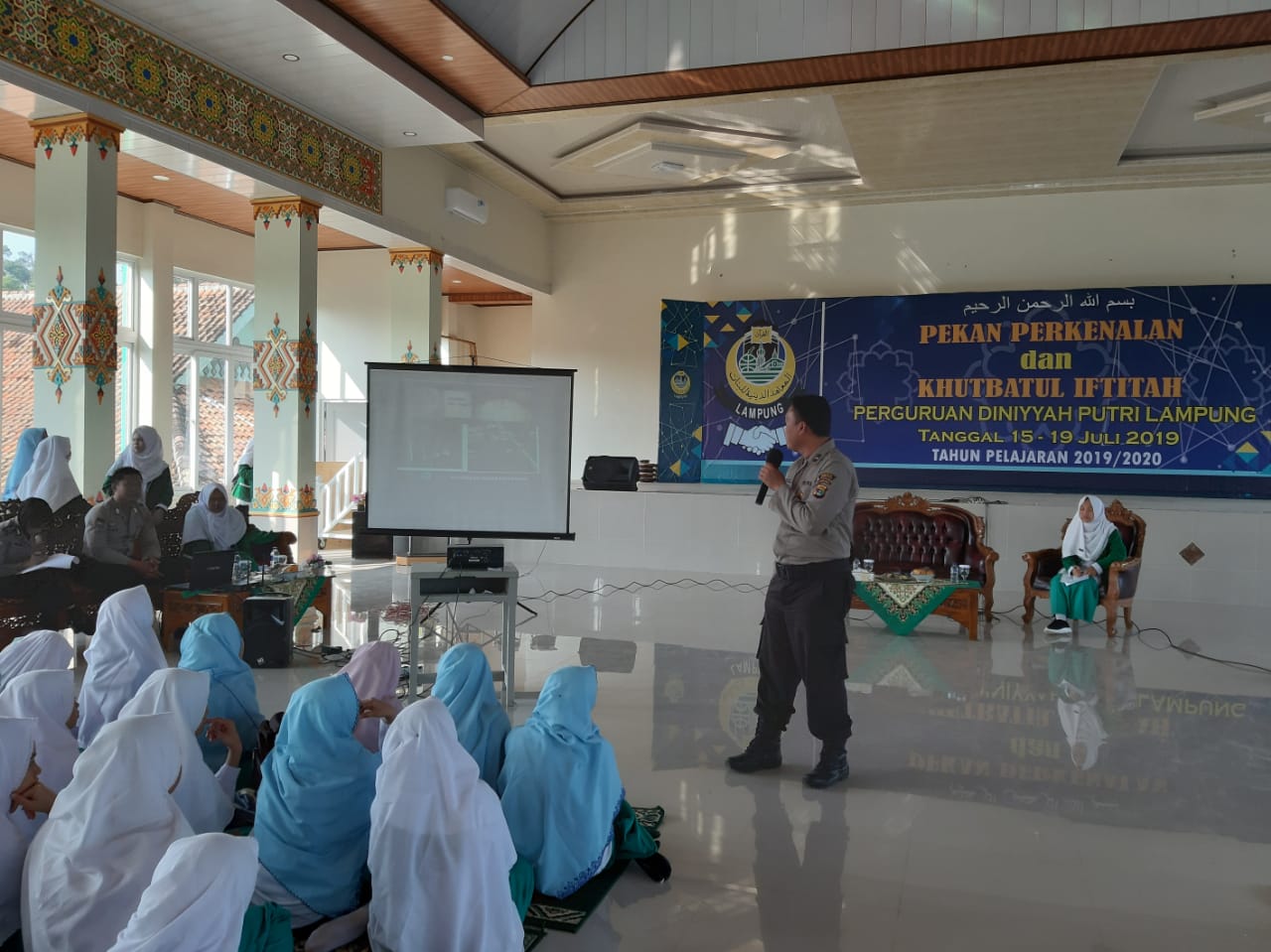 Untuk mencapai hal tersebut, Sat Binmas Polres Pesawaran melakukan penyuluhan kepada santri atau peserta didik yang baru masuk di Pondok pesantren (Ponpes) Daarus Saadah Desa Taman Sari Kecamatan Gedong Tataan, Selasa (16/07).