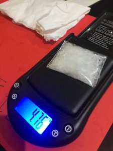 Sebagai upaya tindak lanjut, petugas melakukan penyelidikan. Setelah memastikannya, petugas langsung mengamankan tersangka. Saat digeledah, di atas dinding toilet, di rumah tersangka, ditemukan barang bukti berupa, sabu-sabu sebanyak 1 paket dengan berat 4,67 Gram.