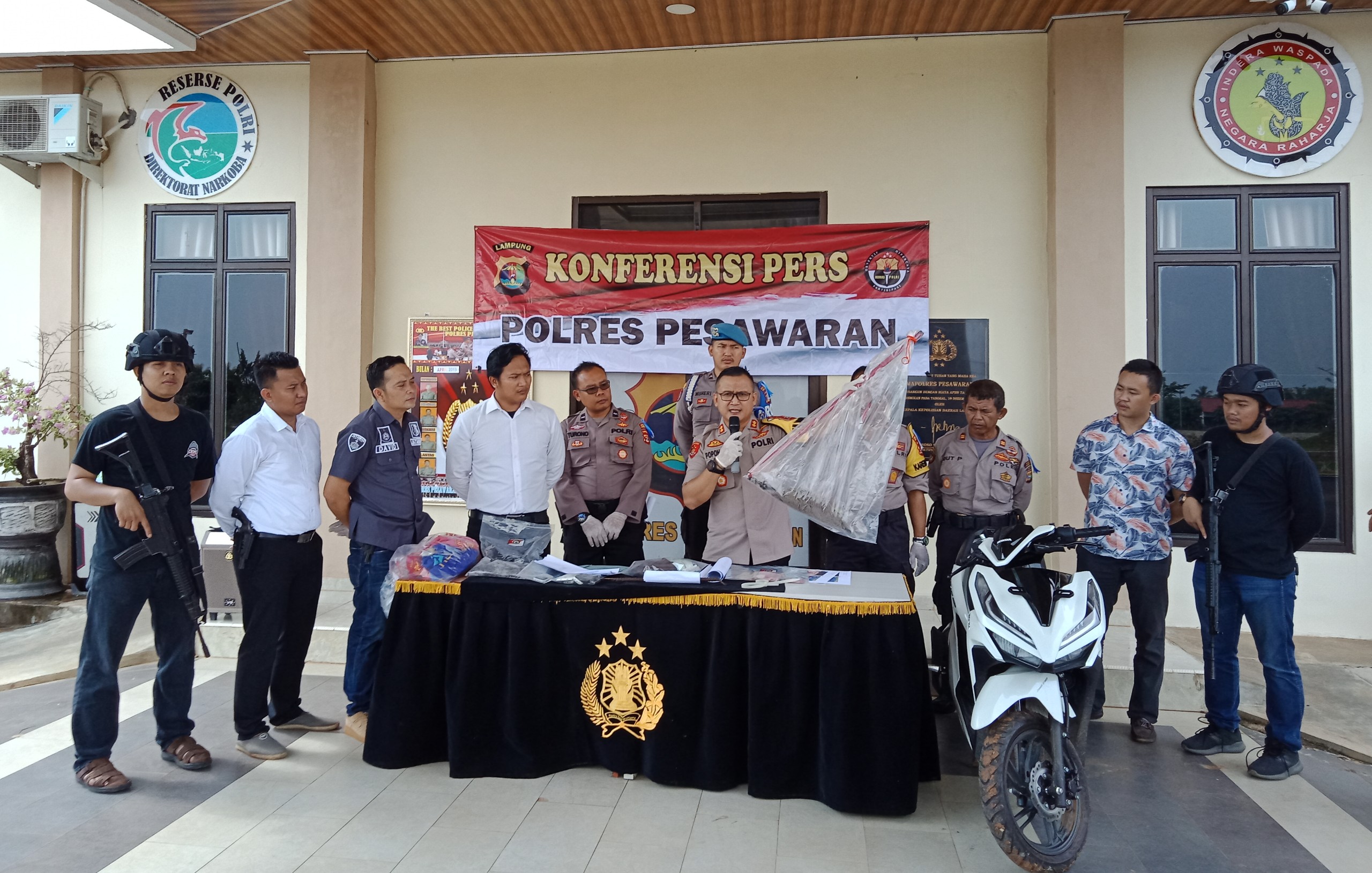 PESAWARAN-(PeNa), Jajaran kepolisian ungkap motif pembunuhan yang menewaskan Bustori (53) dan Tegar (5) pada beberapa waktu lalu. Hal tersebut terungkap pada konferensi pers di Mapolres Pesawaran, Sabtu (01/06).