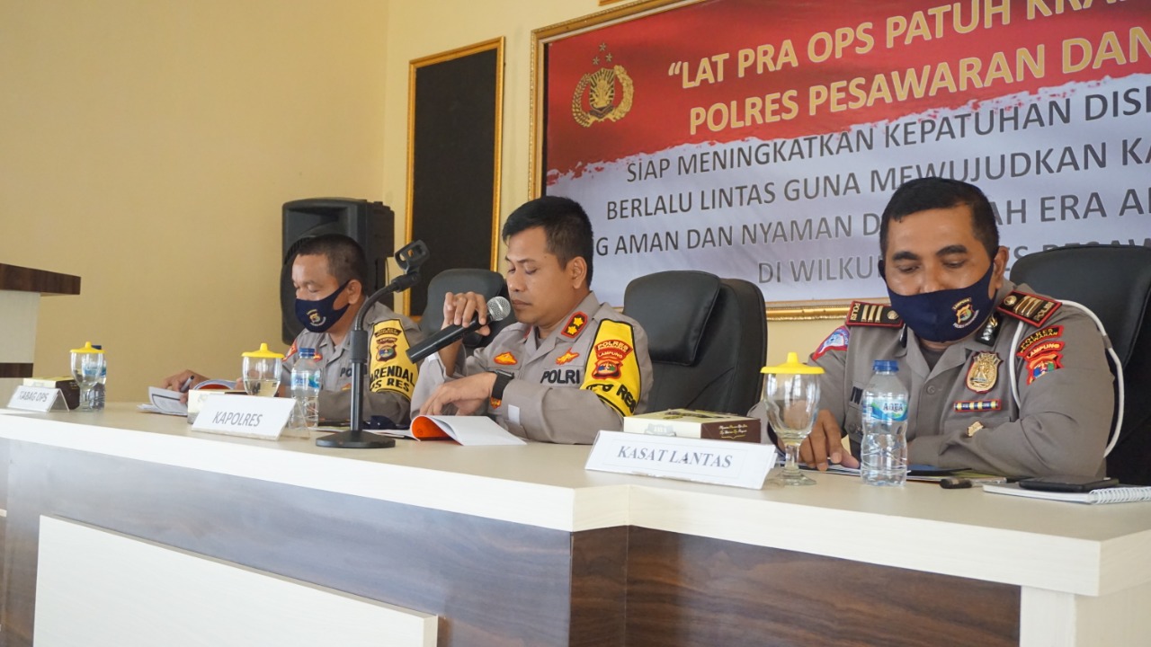 PESAWARAN-(PeNa), Kapolres Pesawaran AKBP Vero Aria Radmantyo pimpin Latihan Pra Operasi (Lat Pra Ops) Patuh Krakatau 2020 di Aula Sanika Satyawada, Rabu ( 22/07/2020).