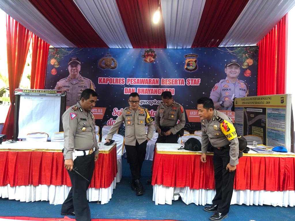 Hal tersebut dikemukakan Kapolres Pesawaran AKBP Popon Ardianto Sunggoro saat memonitor dan mengecek Pos Pam di Kawasan Wisata Pantai Ringgung, Senin (23/12/2019).